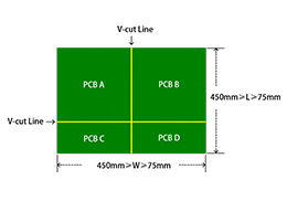 Track to Outline: ≥0.3mm Trace to V-cut line: ≥0.4mm |